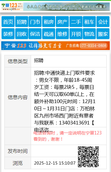 | 防骗提醒: | 太原生活网(www.sxtaiyuan.net)提醒您:手工活、网络兼职、刷单,都是骗子!凡以各种名义收取费用的都是骗子!找工作是往兜里挣钱,让你往外掏钱的都是骗子!异地招聘请提高警惕,谨防诈骗! |