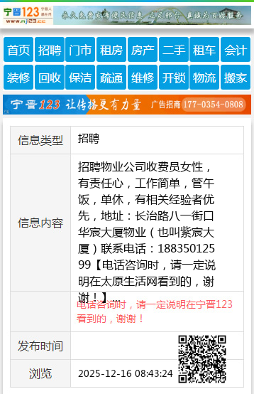 招聘物业公司收费员