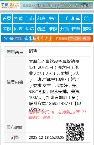 太原部百事饮品招募促销员12月20-21日(周六日)茂业天地(2人)万象城(2人)