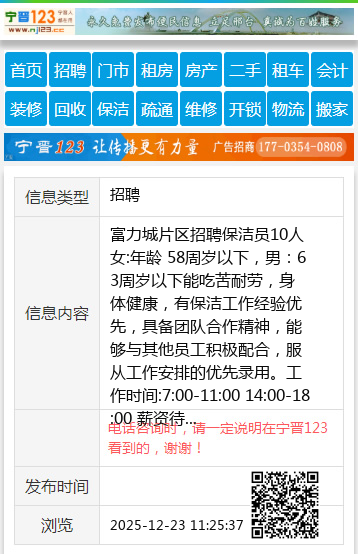 富力城片区招聘保洁员10人