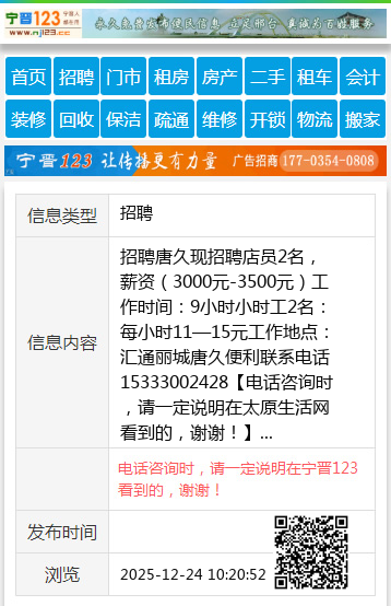 | 防骗提醒: | 太原生活网(www.sxtaiyuan.net)提醒您:手工活、网络兼职、刷单,都是骗子!凡以各种名义收取费用的都是骗子!找工作是往兜里挣钱,让你往外掏钱的都是骗子!异地招聘请提高警惕,谨防诈骗! |