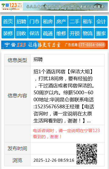 招1个酒店民宿【保洁大姐】,打扰18间房,要有经验的,干过酒店或者民宿保洁的。