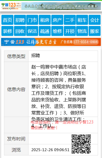 赵一鸣晋中中赢市场店(店长,店员招聘)