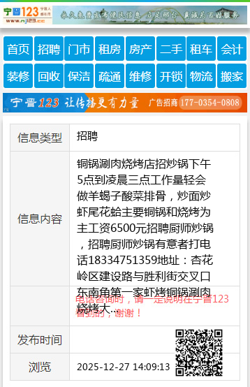 铜锅涮肉烧烤店招炒锅下午5点到凌晨三点工作量轻会做羊蝎子酸菜排骨,炒面炒虾尾花蛤主要铜锅和烧烤为主工资6500元