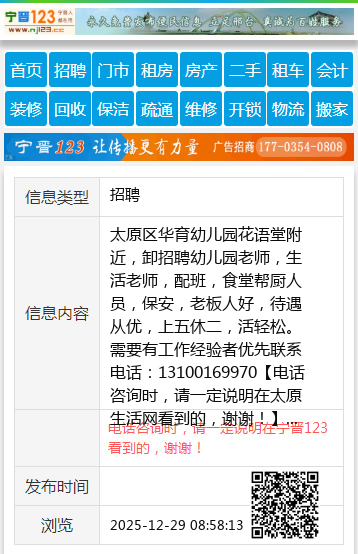 太原区华育幼儿园花语堂附近,卸招聘幼儿园老师,生活老师,配班,食堂帮厨人员,保安,老板人好,待遇从优,上五休二,活轻松。