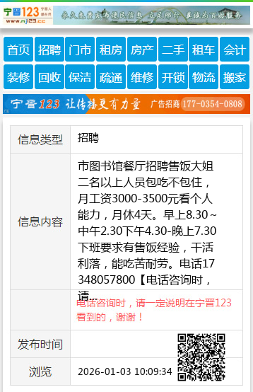 要求有售饭经验,干活利落,能吃苦耐劳。电话17348057800 【电话咨询时,请一定说明在太原生活网看到的,谢谢!】 |