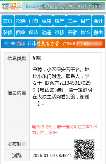 免责声明:本栏目信息由网友自行发布,太原生活网不承担任何责任!提高警惕,谨防诈骗!做推广、做信息置顶!请加太原生活网客服微信:taiyuanwangzhan