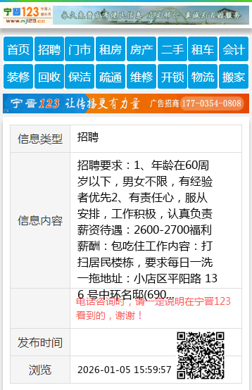 工作内容:打扫居民楼栋,要求每日一洗一拖