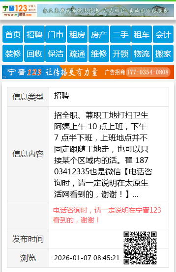 招全职、兼职工地打扫卫生阿姨