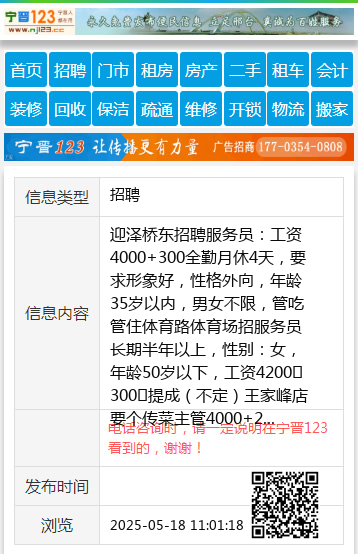 迎泽桥东招聘服务员:工资4000+300全勤月休4天,要求形象好,性格外向,年龄35岁以内,男女不限,管吃管住