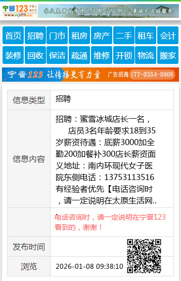 有经验者优先 【电话咨询时,请一定说明在太原生活网看到的,谢谢!】 |