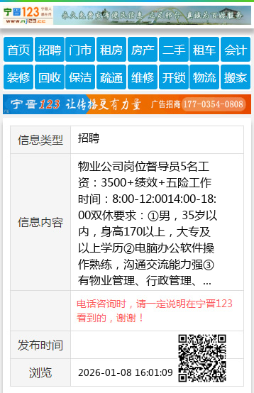 | 防骗提醒: | 太原生活网(www.sxtaiyuan.net)提醒您:手工活、网络兼职、刷单,都是骗子!凡以各种名义收取费用的都是骗子!找工作是往兜里挣钱,让你往外掏钱的都是骗子!异地招聘请提高警惕,谨防诈骗! |