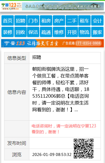 | 防骗提醒: | 太原生活网(www.sxtaiyuan.net)提醒您:手工活、网络兼职、刷单,都是骗子!凡以各种名义收取费用的都是骗子!找工作是往兜里挣钱,让你往外掏钱的都是骗子!异地招聘请提高警惕,谨防诈骗! |