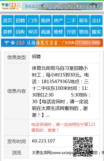 | 防骗提醒: | 太原生活网(www.sxtaiyuan.net)提醒您:手工活、网络兼职、刷单,都是骗子!凡以各种名义收取费用的都是骗子!找工作是往兜里挣钱,让你往外掏钱的都是骗子!异地招聘请提高警惕,谨防诈骗! |