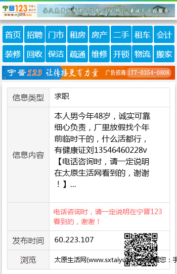 本人男今年48岁,诚实可靠细心负责,厂里放假找个年前临时干的,什么活都行,有健康证