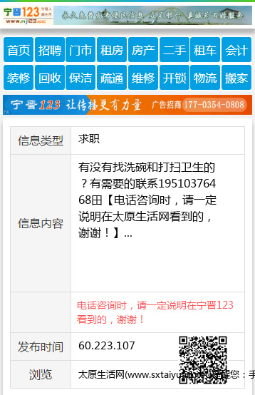 免责声明:本栏目信息由网友自行发布,太原生活网不承担任何责任!提高警惕,谨防诈骗!做推广、做信息置顶!请加太原生活网客服微信:taiyuanwangzhan
