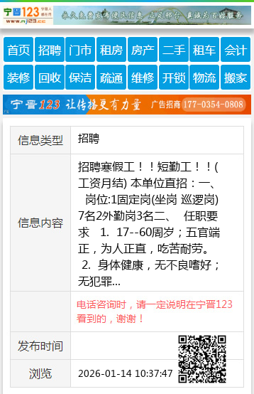 招聘寒假工!!短勤工!!