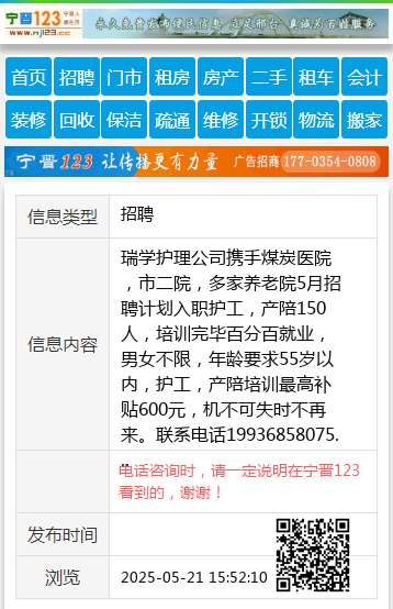 瑞学护理公司携手煤炭医院,市二院,多家养老院5月招聘计划入职护工,产陪150人,培训完毕百分百就业,男女不限,年龄要求55岁以内,护工,产陪培训最高补贴600元,机不可失时不再来。联系电话19936858075 【电话咨询时,请一定说明在太原生活网看到的,谢谢!】 |