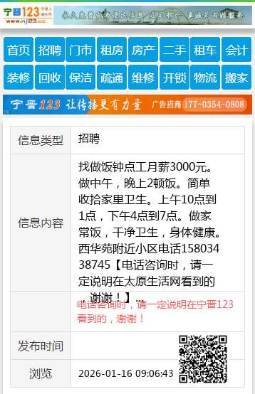 | 防骗提醒: | 太原生活网(www.sxtaiyuan.net)提醒您:手工活、网络兼职、刷单,都是骗子!凡以各种名义收取费用的都是骗子!找工作是往兜里挣钱,让你往外掏钱的都是骗子!异地招聘请提高警惕,谨防诈骗! |