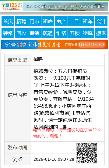 | 防骗提醒: | 太原生活网(www.sxtaiyuan.net)提醒您:手工活、网络兼职、刷单,都是骗子!凡以各种名义收取费用的都是骗子!找工作是往兜里挣钱,让你往外掏钱的都是骗子!异地招聘请提高警惕,谨防诈骗! |