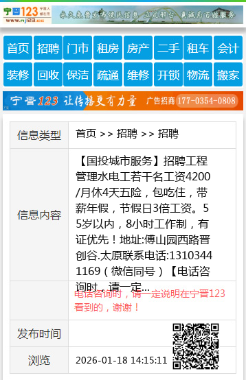 联系电话:13103441169(微信同号) 【电话咨询时,请一定说明在太原生活网看到的,谢谢!】 |