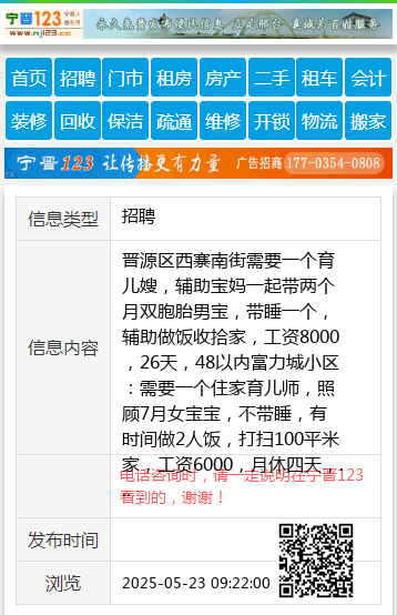 晋源区西寨南街需要一个育儿嫂,辅助宝妈一起带两个月双胞胎男宝,带睡一个,辅助做饭收拾家,工资8000,26天,48以内