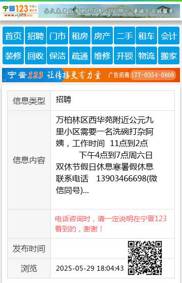 万柏林区西华苑附近公元九里小区需要一名洗碗打杂阿姨,工作时间 11点到2点 下午4点到7点周六日双休节假日休息寒暑假休息联系电话 13903466698(微信同号) 【电话咨询时,请一定说明在太原生活网看到的,谢谢!】 |