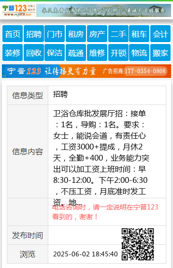 卫浴仓库批发展厅招:接单:1名,导购:1名。