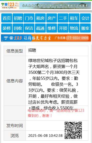 绿地世纪城包子店招聘包包子大姐两名,薪资第一个月3500第二个月3800月休三天,年龄55岁以内。要求:勤劳聪明。
