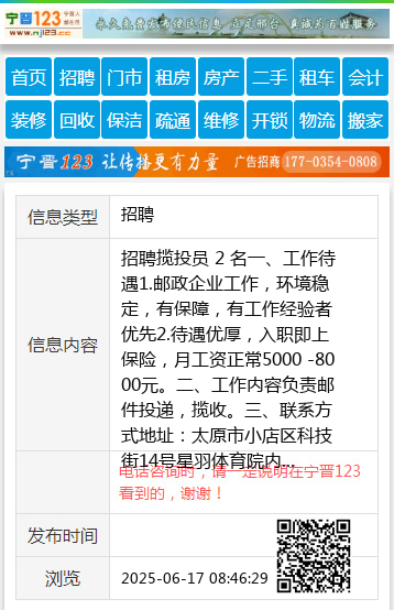 1.邮政企业工作,环境稳定,有保障,有工作经验者优先