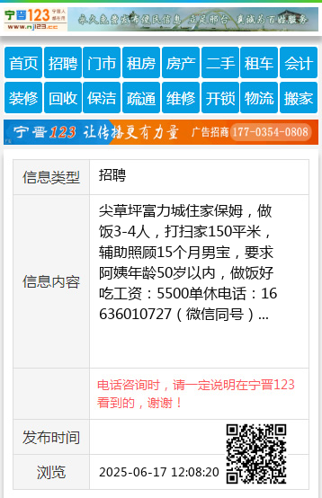 尖草坪富力城住家保姆,做饭3-4人,打扫家150平米,辅助照顾15个月男宝,要求阿姨年龄50岁以内,做饭好吃