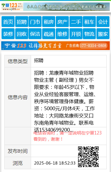 招聘:龙康青年城物业招聘物业主管(副经理)男女不限要求:年龄45岁以下,物业从业经验客服管理、运维、秩序环境管理身体健康。薪资:5000元/月休4天,工作地址:大同路龙康街交叉口东南角青年城物业。联系电话15340699200 【电话咨询时,请一定说明在太原生活网看到的,谢谢!】 |