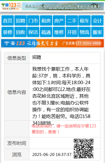 我想找个兼职工作,本人年龄:37岁,男,本科学历,具体如下:1.时间:每天18:00-24:00之间都可以2.地点:最好在杏花岭北宫区域附近,其他也不限3.擅长:电脑办公软件操作,有一定的组织协调能力!能吃苦耐劳。电话☎15834188987 【电话咨询时,请一定说明在太原生活网看到的,谢谢!】 |