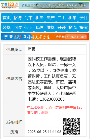 | 防骗提醒: | 太原生活网(www.sxtaiyuan.net)提醒您:手工活、网络兼职、刷单,都是骗子!凡以各种名义收取费用的都是骗子!找工作是往兜里挣钱,让你往外掏钱的都是骗子!异地招聘请提高警惕,谨防诈骗! |