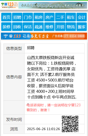 1.铁板烧厨师,女厨优先,工资待遇优厚 店面不大 活不累