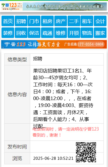 工作说明:店面属于线上外卖店,每天的工作就是按照顾客下单要求切配水果,打包好,每天晚上23点以后单量逐渐减少,没单子可睡觉,有单子起来做就行,简单易上手。联系人:李联系电话:13546342563 【电话咨询时,请一定说明在太原生活网看到的,谢谢!】 |