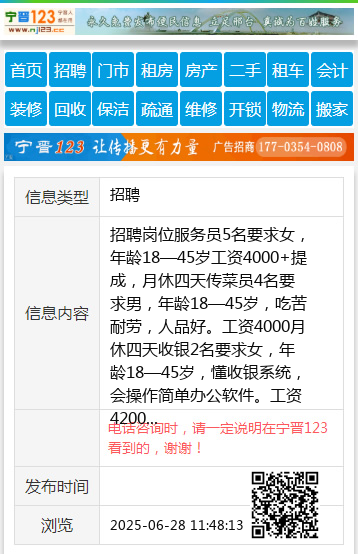 | 防骗提醒: | 太原生活网(www.sxtaiyuan.net)提醒您:手工活、网络兼职、刷单,都是骗子!凡以各种名义收取费用的都是骗子!找工作是往兜里挣钱,让你往外掏钱的都是骗子!异地招聘请提高警惕,谨防诈骗! |