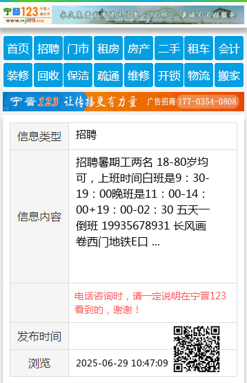 晚班是11:00-14:00+19:00-02:30 五天一倒班 19935678931 长风画卷西门地铁E口 【电话咨询时,请一定说明在太原生活网看到的,谢谢!】 |