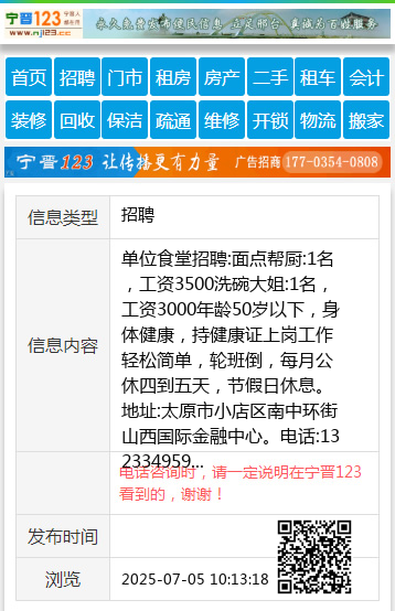 | 防骗提醒: | 太原生活网(www.sxtaiyuan.net)提醒您:手工活、网络兼职、刷单,都是骗子!凡以各种名义收取费用的都是骗子!找工作是往兜里挣钱,让你往外掏钱的都是骗子!异地招聘请提高警惕,谨防诈骗! |