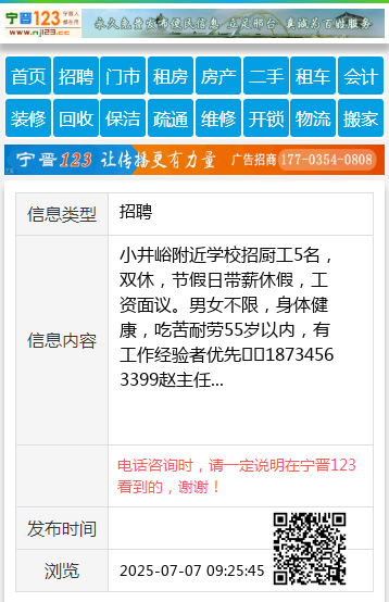 小井峪附近学校招厨工5名,双休,节假日带薪休假,工资面议。男女不限,身体健康,吃苦耐劳55岁以内,有工作经验者优先☎️18734563399赵主任 【电话咨询时,请一定说明在太原生活网看到的,谢谢!】 |
