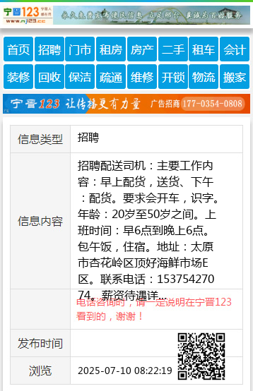 薪资待遇详聊+微信私聊 【电话咨询时,请一定说明在太原生活网看到的,谢谢!】 |