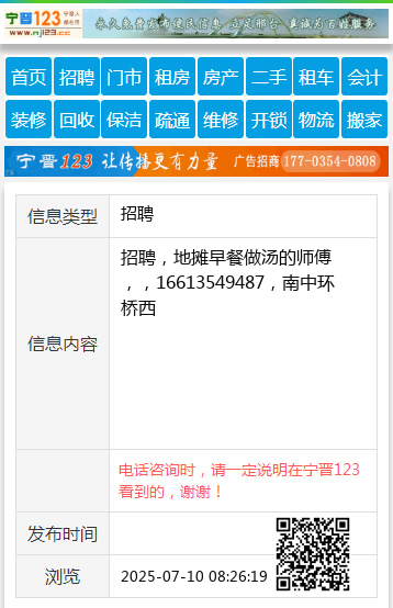 招聘,地摊早餐做汤的师傅,,16613549487,南中环桥西