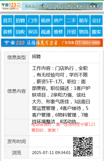 工作内容:门店执行,全职,有无经验均可,学历不限,薪资5千-1万。职位:面部美容。