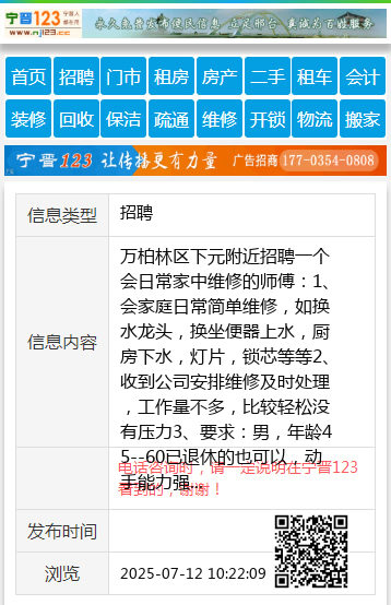 万柏林区下元附近招聘一个会日常家中维修的师傅: