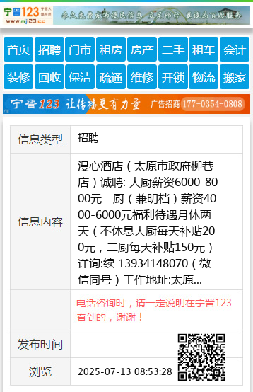 漫心酒店(太原市政府柳巷店)诚聘:
