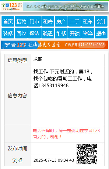 找工作 下元附近的,男18,找个包吃的暑期工工作,电话13453119946