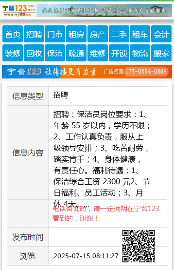 招聘:保洁员