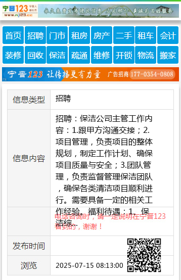 3.团队管理,负责监督管理保洁团队,确保各类清洁项目顺利进行。