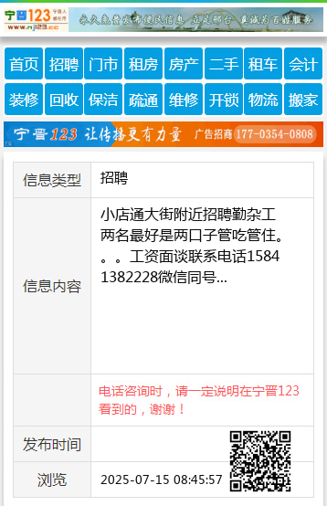 小店通大街附近招聘勤杂工两名最好是两口子管吃管住。。。