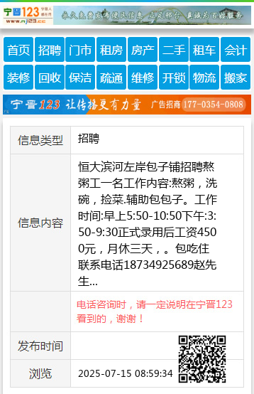 恒大滨河左岸包子铺招聘熬粥工一名